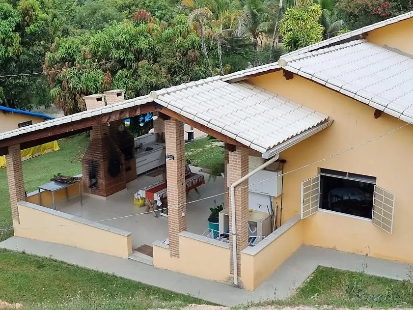 Die Villa Sitio Sonho Da Vovo Esmeraldas verfügt über eine Terrasse mit einem Swimmingpool.